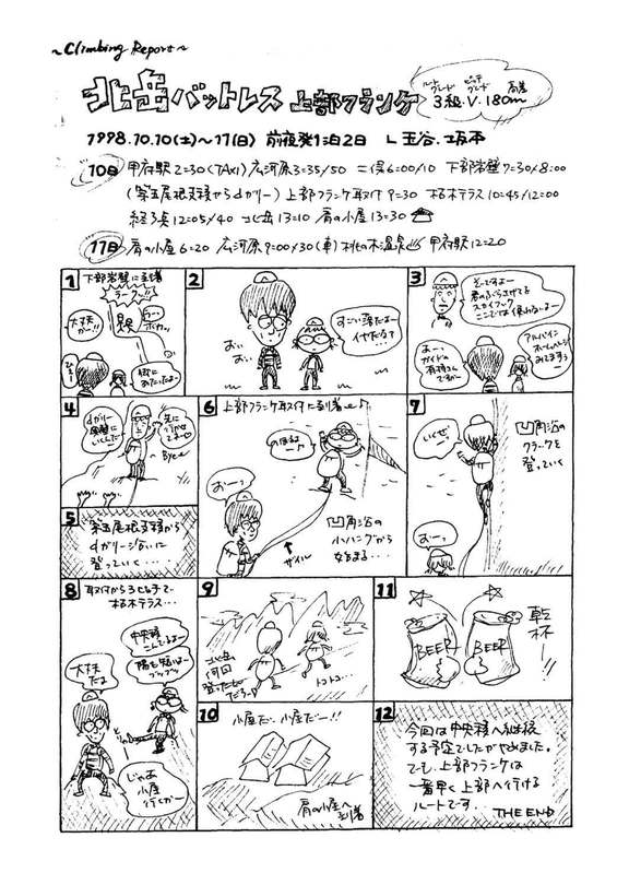 北岳バットレス 下部フランケ~dガリー奥壁L坂本(記)、SL玉谷 1998.9.12(sat)~13(Sun) 前夜発 11日 新宿駅23:5012日 甲府駅2:08/2:20(タクシー)広河原3:30/4:00 下部岩…