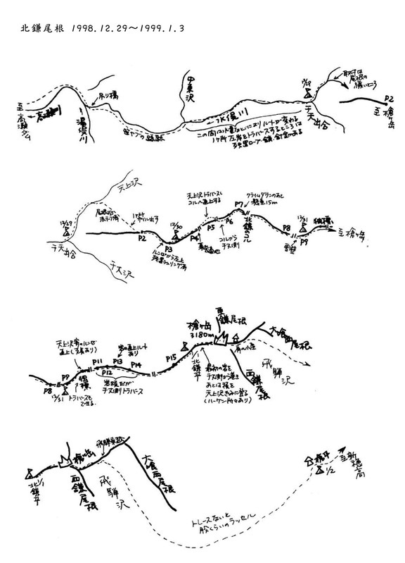 今、ここにいる。いま北鎌尾根に俺、登ってるんだ。夢のように長かった。夢のようで短かった。来てよかった。沢・氷・岩・雪といろんな要素がぎっしりとつまっていた。ルートなんてその時の状況によって常に変わると教えてくれた、湯俣からのアプローチ。すべてが凍りつきそうなほど寒い吹雪のなかの長い長い登攀と、ホワイトアウトの下降。プロガイドのパワーを見せつけられた森中さん。登攀系山岳会の凄さをみたG登攀クラブと、人間的魅力あふれる熱いリーダーの鈴木才吉さん。(G登攀クラブの主カメンバーはパチンコルートへ行っていて、才吉さんは入会まだ2年目で新人二人を連れていた)ベテランの余裕を見た、ぶなの会の竹内さん…。他のパーティーにもいろんなことを教えてもらった。才吉さんが、「すげぇ所に来ちゃったなぁ。内容が全然上ですよ」竹内さんが頂上直下で言った。「これは(この天気のなかで登るのは)価値がありますよ」