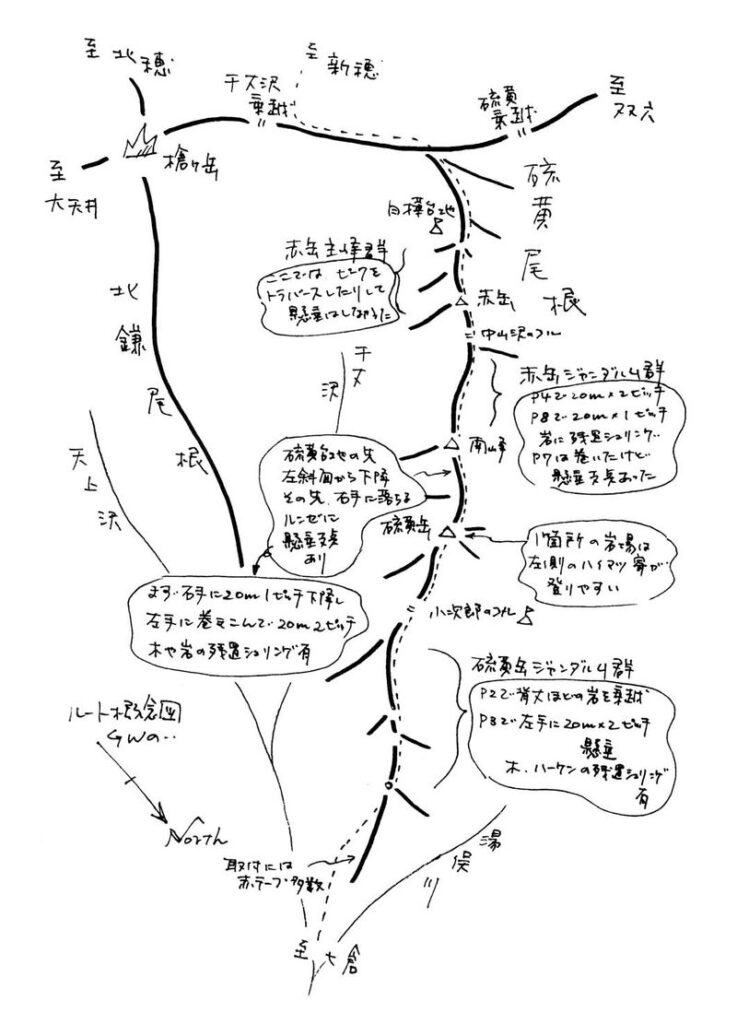 5/03(木) 信濃大町駅5:08/5:50=(タクシー)七倉6:10/6:30高瀬ダム6:40 湯俣9:30/9:40 硫黄尾根取付10:00 硫黄尾根下部10:20 硫黄岳ジャンダルムPⅠ13:00 PⅢ13:30 小次郎のコル16:00 雨[テント泊まり]