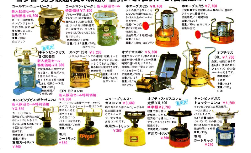学生時代、部室の倉庫にはオプチマス・スベア・プリムス・マナスル・ホエーブス№625などといった共同装備のクラシカルなコンロがたくさん転がっていた。